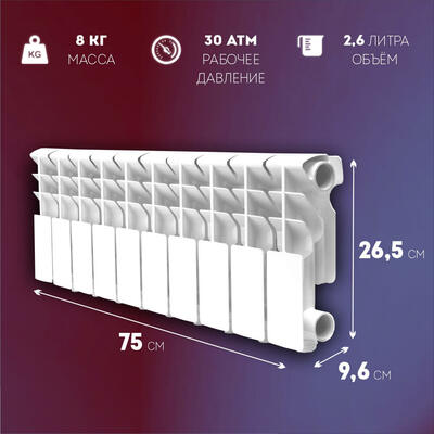 Биметаллический радиатор Konner Bimetal 100/200, 10 секций