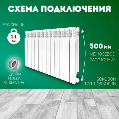 Биметаллический радиатор Konner Bimetal 100/500, 12 секций