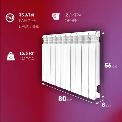 Биметаллический радиатор Konner Bimetal PRO 80/500, 10 секций – это НОВАЯ серия высококачественных радиаторов для индивидуальных систем отопления, разработанная специально для использования в российских условиях эксплуатации.