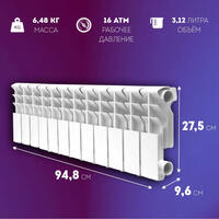 - Теплоотдача: 960 Вт