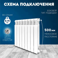 Алюминиевый радиатор Konner Lux 80/500, 8 секций