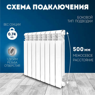 - Высокая теплоотдача (175 Вт/секция).
