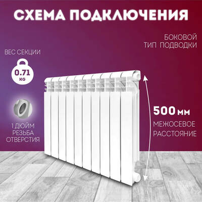 Алюминиевый радиатор Konner Lux 100/500, 12 секций