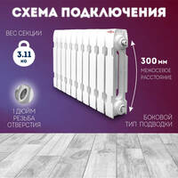 Чугунный радиатор Konner Модерн 300, 10 секций